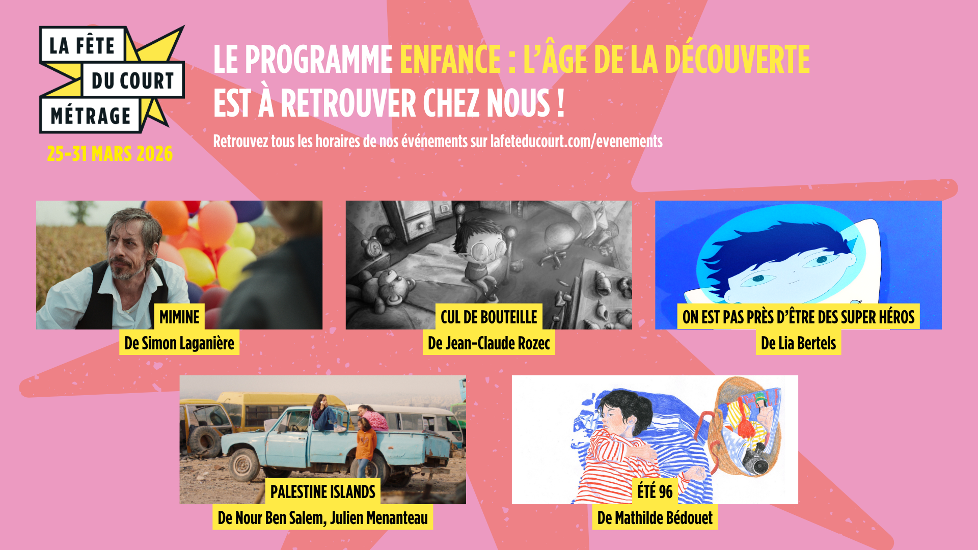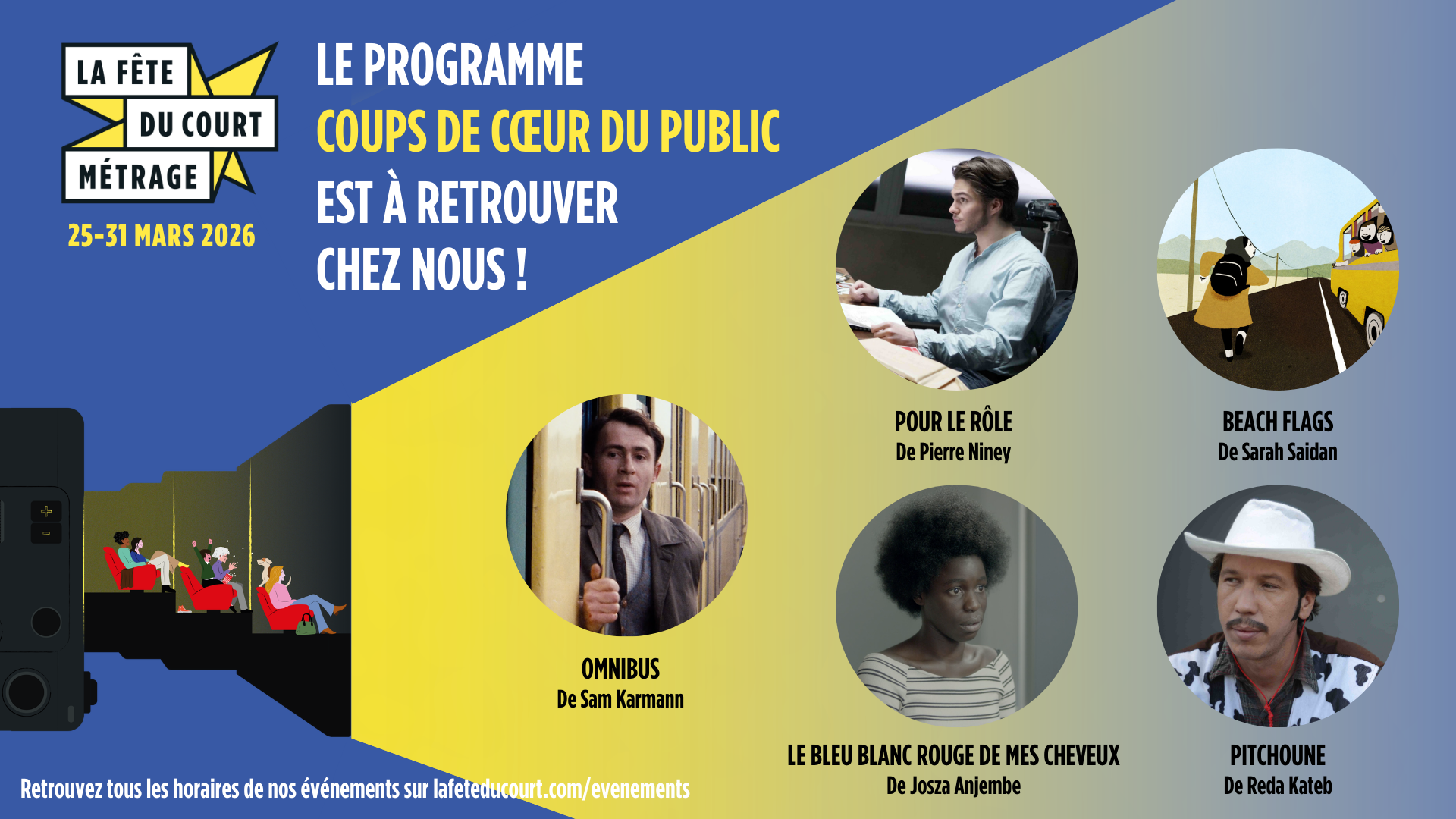 La Maison Kénanaise participe à la Fête du Court 2026 et vous propose le mercredi 25 mars une programmation « Jeunesse » (jeunes publics, 3-10 ans) et « Enfance » (tous publics, à partir de 10 ans), ainsi qu’une programmation « Coups de coeur du public » (tous publics, à partir de 12 ans) le samedi 28 mars à 20h30.