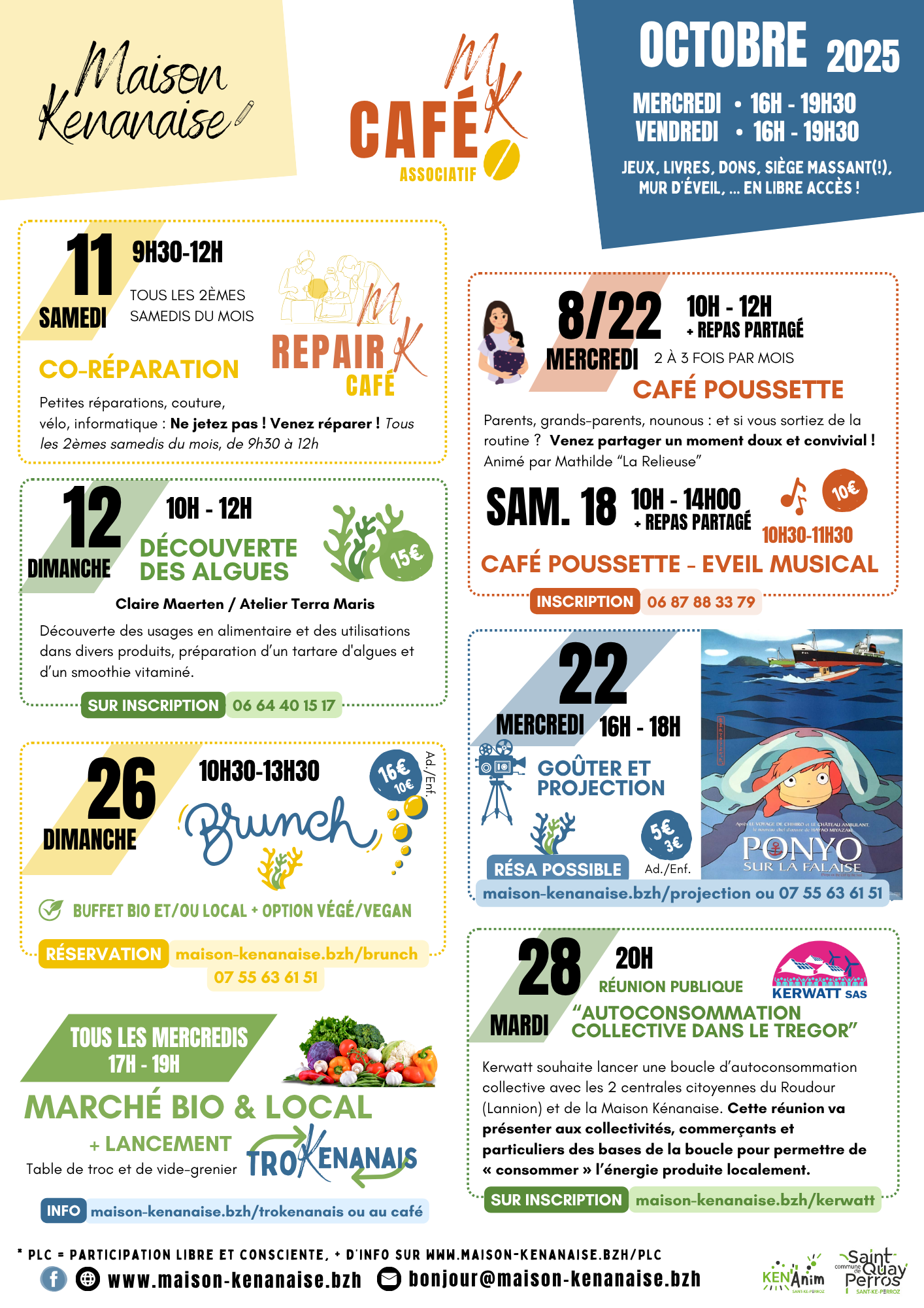 Indépendants, freelance, télétravailleurs, étudiants, associations, habitants… Rejoignez-nous! Que ce soit pour travailler, mais aussi pour écrire, rechercher un emploi, gérer ses démarches administratives, … profitez d’un endroit paisible (au vert!) et d’une communauté bienveillante et solidaire, dans l’esprit du tiers-lieu de la Maison Kénanaise.